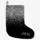 Silver Black Girly Glitter Sparkle Monogram Name Small Christmas Stocking