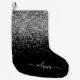 Silver Black Girly Glitter Sparkle Monogram Name Small Christmas Stocking