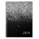 Silver Black Glitter Monogram Girly Name Initials Notebook