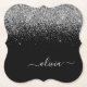 Silver Black Glitter Script Monogram Girly Name Paper Coaster