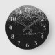 Silver Black Glitter Script Monogram Girly Name Round Clock