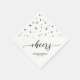 This custom paper napkin will add stylish detail to your special day. This design features stylish script lettering "cheers" with a hexagon shape confetti background. Perfect party decor for a modern black & silver theme birthday party. More matching invitations and party supplies are available at my shop BaraBomDesign.