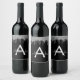 Silver Black Luxury Glitter Glam Monogram Name Wine Label