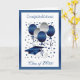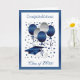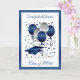 Class of Graduation card with silver blue Mortar, balloons and diploma