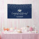 Celebrate your special day with this stylish graduation banner. This banner design features chic silver typography "Congratulations!" and a graduation cap on a navy blue background. You can personalise the text and the photo. More party supplies and stationeries are available at my shop BaraBomDesign.