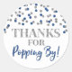 Silver Blue Confetti Thanks for Popping By Classic Round Sticker