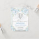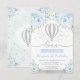Silver Blue Floral Hot Air Balloon 1st Birthday Invitation