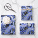 Silver Blue Floral Leaves Illustration Pattern Wrapping Paper Sheet
