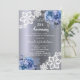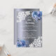 Silver blue florals lace 25th wedding anniversary invitation