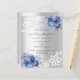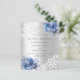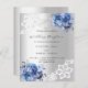 For an elegant and romantic wedding. A faux silver looking background decorated with blue florals, roses and white lace. Personalise and add your names and details.