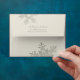 The return address text on this silver grey, ice blue, and ivory or champagne snowflakes winter wedding A-2 (fits 4.25"x5.5" Zazzle invitations and note cards) envelope is fully customisable and you can change it using the personalise option. For more extensive changes to the envelope, including changing the font, font colour, or text placement, use the customise option. A great choice for a wedding or other special occasion in the winter. This is a printed on design with silver colours, not metallic ink.