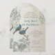 Silver Blue Love Birds Arch Shape Wedding Invitation