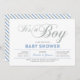 Silver, Blue | Modern Typography Boy Baby Shower Invitation