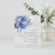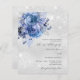 Faux silver looking background decorated with blue florals and faux glitter sparkles. Personalise and add your names and wedding details. Black coloured letters.