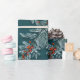 Silver Blue Spruce Red Ilex Berries Lattice Teal Wrapping Paper
