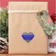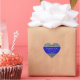 Luxury, elegant heart shaped silver glitter and royal blue wedding thank you sticker for favours, with modern script.