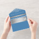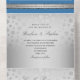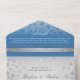 Elegant, adorable ice blue and glitter silver all-in-one wedding invitation with modern calligraphy, sparkling snowflakes and custom picture of the couple at the back. Perfect choice for contemporary Winter weddings!