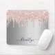 Silver blush pink glitter drip sparkle monogram mouse mat
