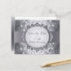 Celebrate the 25th anniversary couple with a save the date postcard that celebrates this achievement in style. Faux glittery bokeh images sprinkle down against a silvery gradient background. The colour palette is silver...traditional for the 25th wedding anniversary. The main text is highlighted in an ornament held on by a silver ribbon image. The reverse gives the information about the upcoming celebration accented by a silver ribbon on the left edge. Available in alternate colours with matching products.