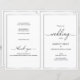 This foldable wedding program features a faux silver border which will complement many wedding theme colours. Designed to be printed on both sides and supplied flat for you to fold, the cover shows the venue whilst the inside can be edited with the order of service and wedding party.This modern design with silver borders is suitable for a religious church memorial service or a humanist ceremony. The FAUX silver foil effect border is printed and is NOT metallic.