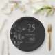 Silver Botanical Floral 25th Wedding Anniversary Paper Plate
