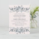 Elegant watercolor botanical wedding invitation frames your wedding details with a ribbon of sheer pastel watercolor foliage in pale, silver and grey on a elegant PALE PINK background.