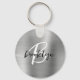 This elegant personalised keychain features a monogram and first name in modern black and white script on a silver faux brushed metal background.