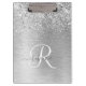 Silver Brushed Metal Glitter Monogram Name Clipboard