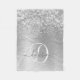 Silver Brushed Metal Glitter Monogram Name Fleece Blanket
