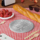 Easily personalise this trendy chic paper plates design featuring pretty silver sparkling glitter on a silver brushed metallic background.