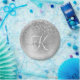 Silver Brushed Metal Glitter Monogram Name Paper Plate