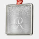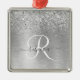 Easily personalise this trendy ornament featuring pretty silver sparkling glitter on a silver brushed metallic background.