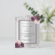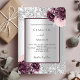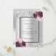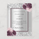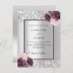 Faux silver looking background decorated with burgundy and pink florals, flowers and faux silver glitter, sparkles. Personalise and add your names and wedding details. Black letters.