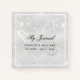 A faux silver metallic looking background, with a butterfly and faux glitter dust, sparkles. Personalise and add text, name .