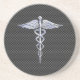 Silver Caduceus Medical Symbol Carbon Fibre Style Coaster