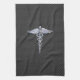 Silver Caduceus Medical Symbol Carbon Fibre Style Tea Towel