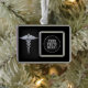 Silver Caduceus Medical Symbol on Black Plated Framed Ornament