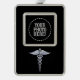 Silver Caduceus Medical Symbol on Black Plated Framed Ornament