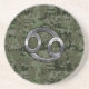 Silver Cancer Zodiac Sign on Green Digital Camo Coaster