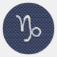 Silver Capricorn Zodiac Sign Blue Carbon Style Classic Round Sticker