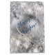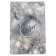 Elegant Christmas gift bag with silver Christmas bauble, white sparkling lights, tinsel and space for your text. If you need any help with this design, feel free to contact me.