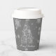 Sip your favourite Christmas time beverages with a festive set of Silver Christmas Tree and Snowflakes Paper Cups. Paper cup design features a vibrant artistic Christmas tree with falling snowflakes and a dark grey background. Additional gift and holiday items available with this design as well.