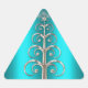 This colourful aqua Christmas sticker features a metallic silver Christmas tree (and a very modern tree at that) with a sparkling silver star at the top. Underneath it is an eye-catching aqua gradient pattern. This striking silver and aqua sticker will add a contemporary and stylish touch to your Christmas this year for sure.