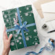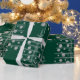 Silver Christmas Trees Laden With Ornaments Green Wrapping Paper