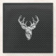 Silver Chrome Deer on Carbon Fibre Style Print Glass Coaster