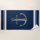 This towel design has a silver coloured anchor with coordinating accent stripes at the top and bottom. Shown here with a navy background, that you can customise.