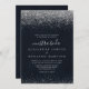 This silver confetti calligraphy nuestra boda wedding invitation is perfect for a rustic wedding. The simple and elegant design features classic and fancy script typography in with a blue background and silver confetti.