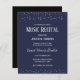 Lovely faux gold glitter confetti highlights on the top and bottom border. Faux silver foil music notes on the top of invitation. Silver and blue elegant and simple music recital invitations. Great for piano, flute, clarinet, trumpet, violin, guitar, or multiple student music recitals. Generic for multiple instrument types.
