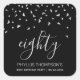Help them celebrate their 80th birthday in style with this simple but elegant design, featuring faux silver triangular confetti sifting down on the word "eighty" in light grey handwriting font on a black background. Personalise it with the name of the honoree in light grey sans serif font, along with the occasion and date below in a smaller light grey typeface.