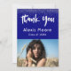 Your name and class year are rendered in a modern font in white; just use the template fields to replace mine with your own. I've created a graphic using a great fun, bold handwritten font from my collection. The words "Thank You" is an image that can be re-positioned and resized as you wish. The background is navy and this can be changed to any other colour if you prefer another. Congratulations on your milestone achievement!